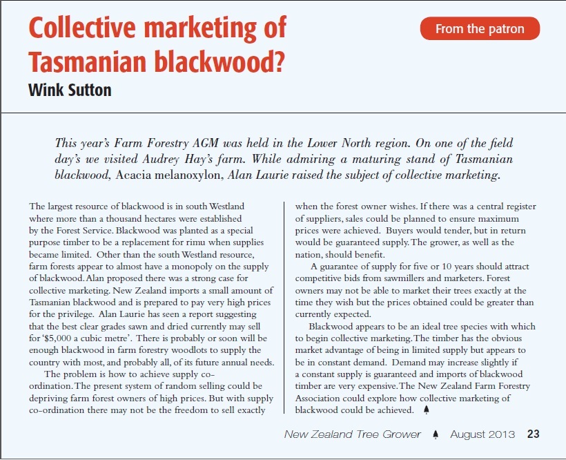 So can the NZFFA/AMIGO evolve into a marketing cooperative and help take the NZ blackwood industry to the next level?