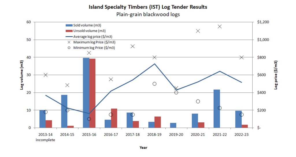It’s that time of the year again! Time to present my annual summary of competitive blackwood log prices from the Island Specialty Timber log tenders.