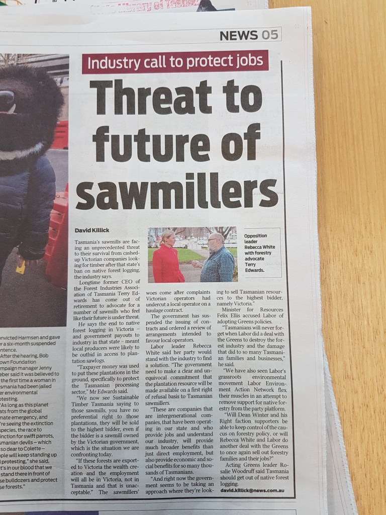 How dare the Tasmanian State government sell it’s forest products onto the open commercial market, and not give them to local sawmillers.